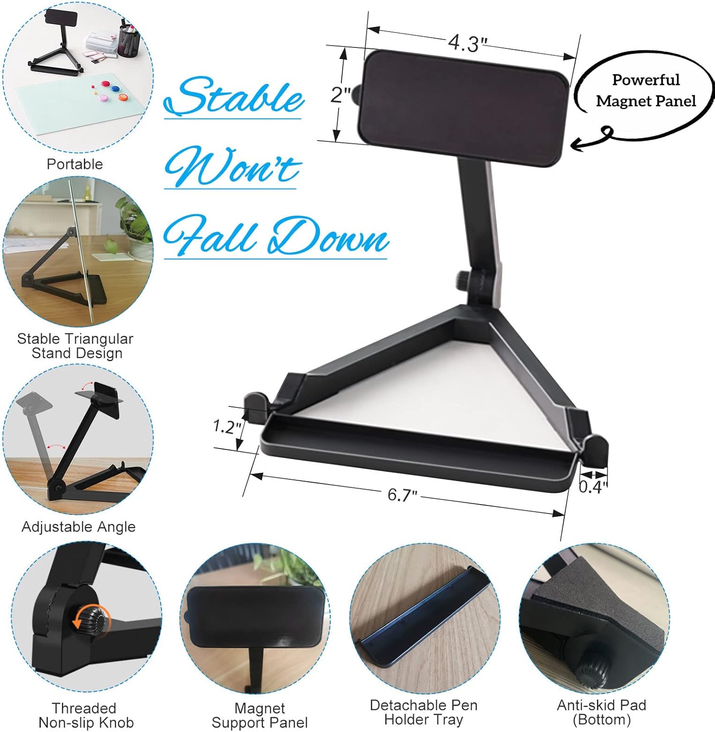 - REMOVABLE STAND UPGRADE & REINFORCEMENT - Triangular stable structure and anti-slip design, black strong magnet panel can attract the magnetic glass board. The bracket is convenient for adjusting the comfortable angle. Stable stand doesn't wobble on the tabletop, the easel also doesn't slide and fall down, just adjust it and tighten it to stay
