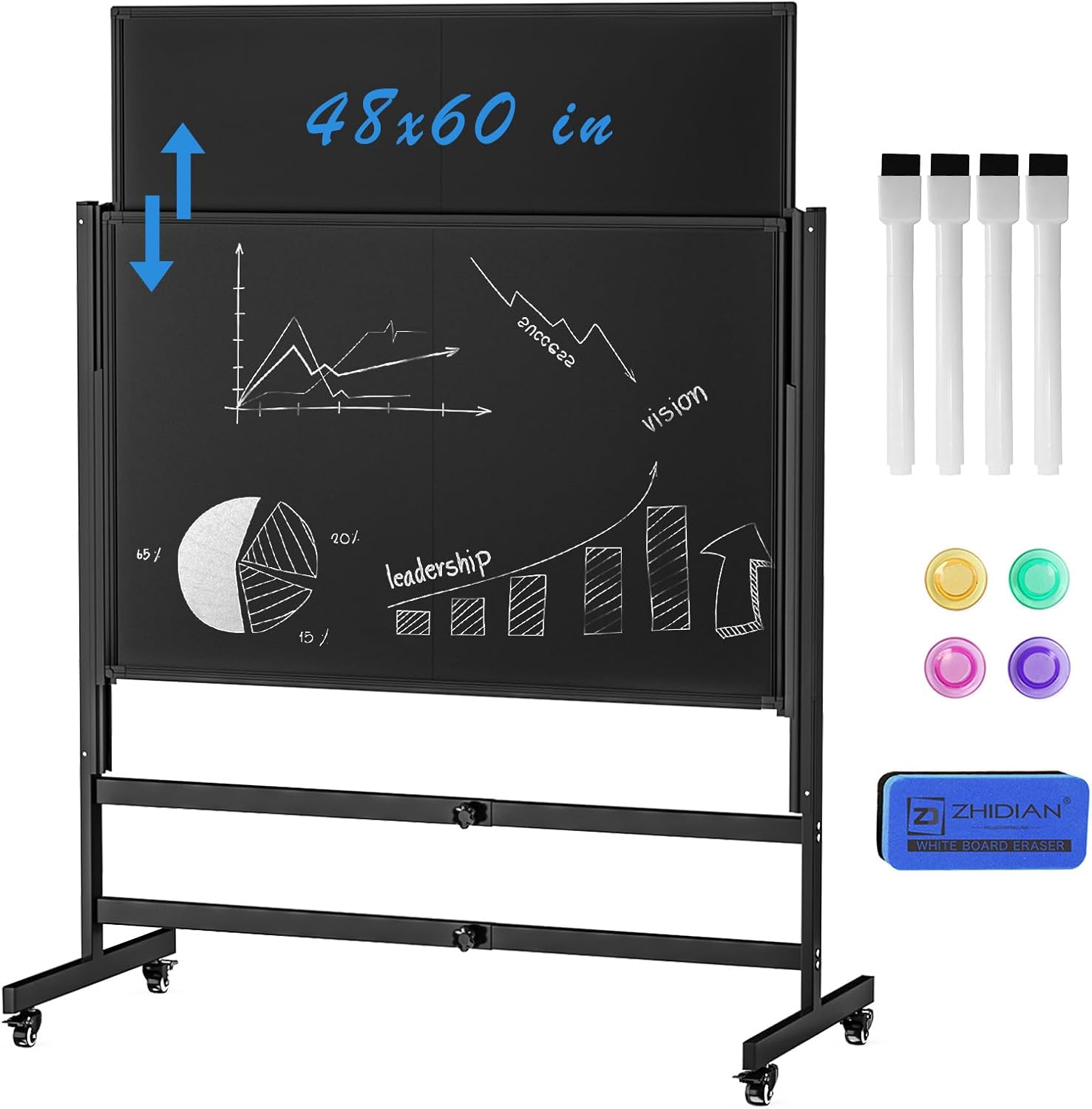 Rolling Chalkboard Double-Sided 60 x 36, Large Magnetic Blakc Dry Erase Board with Stand, Movable Blackboard for Office, School, Home
