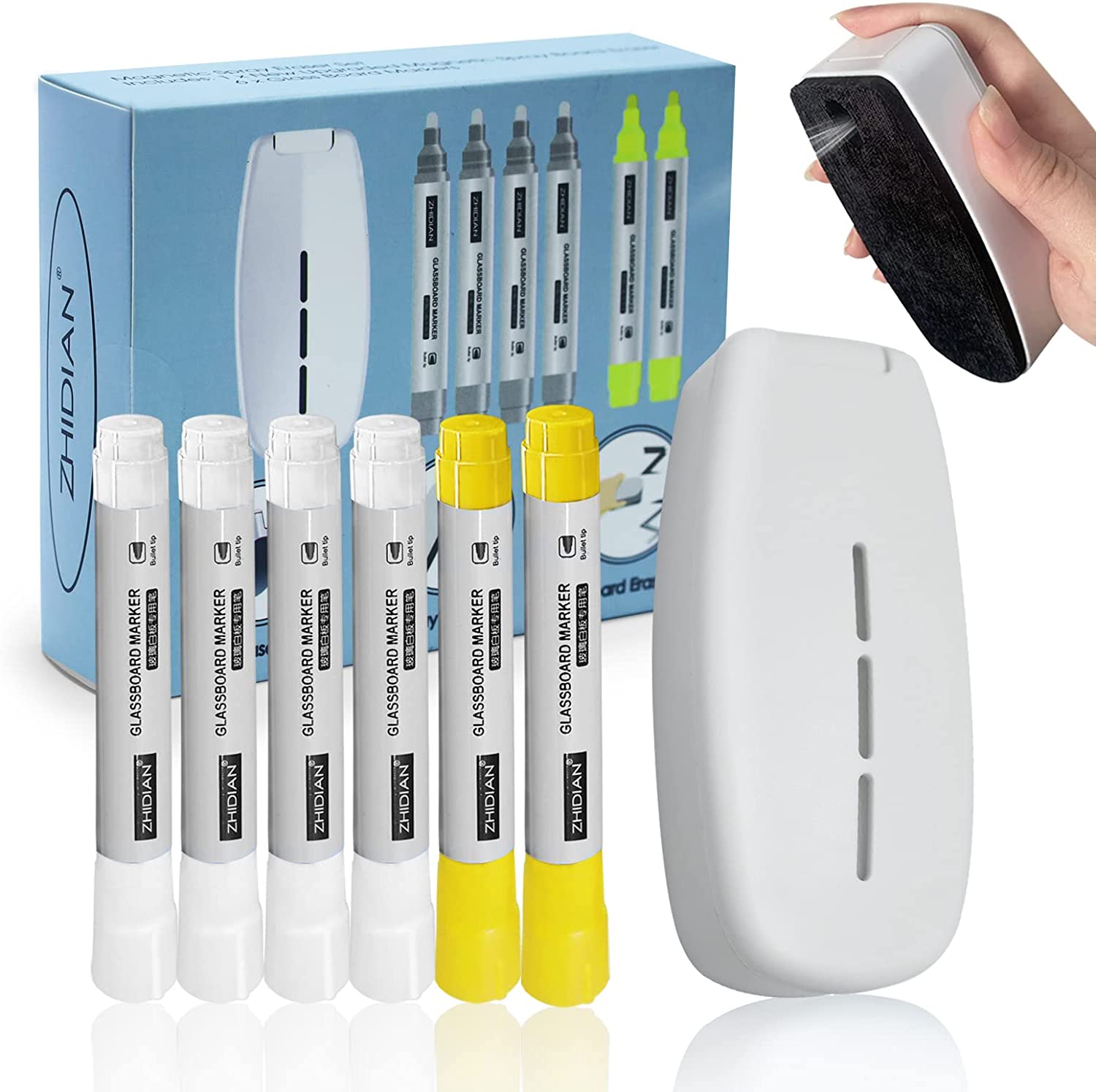 Magnetic Dry Erase Erasers All-in-One Whiteboard Spray Eraser for White Board,Glass Board with Free 6 Liquid Chalk Markers