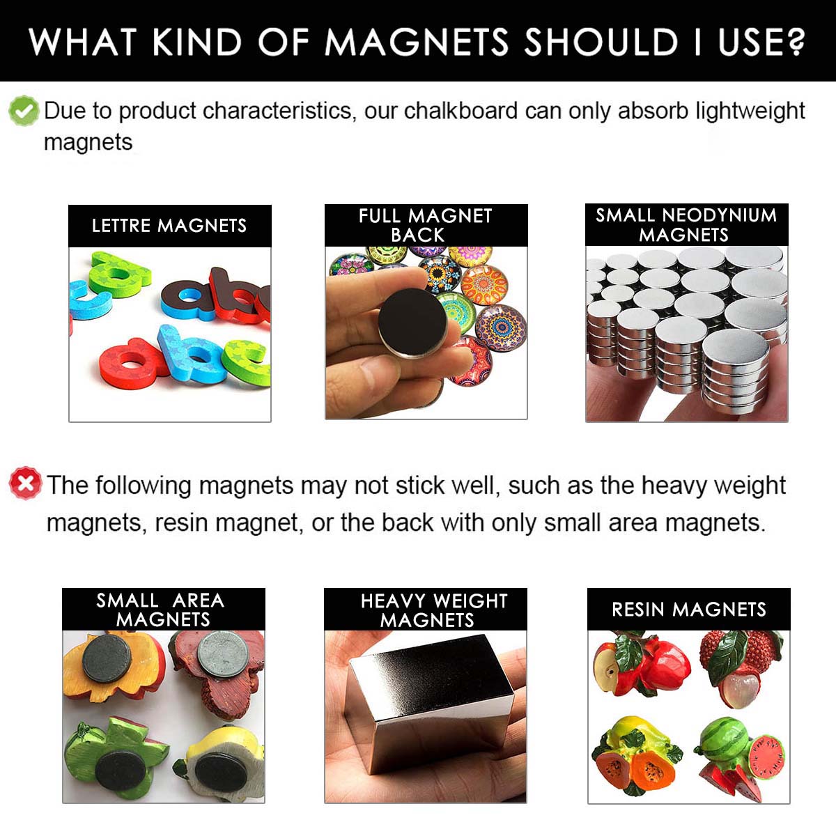 - The bottom uses 0.5mm thick mixed iron and rubber, papers can be attached to the chalkboard surface by magnets.