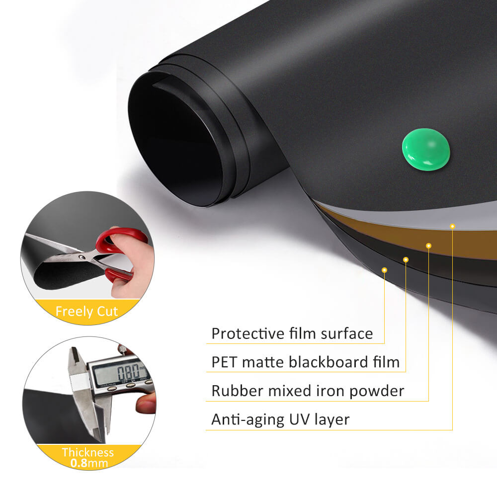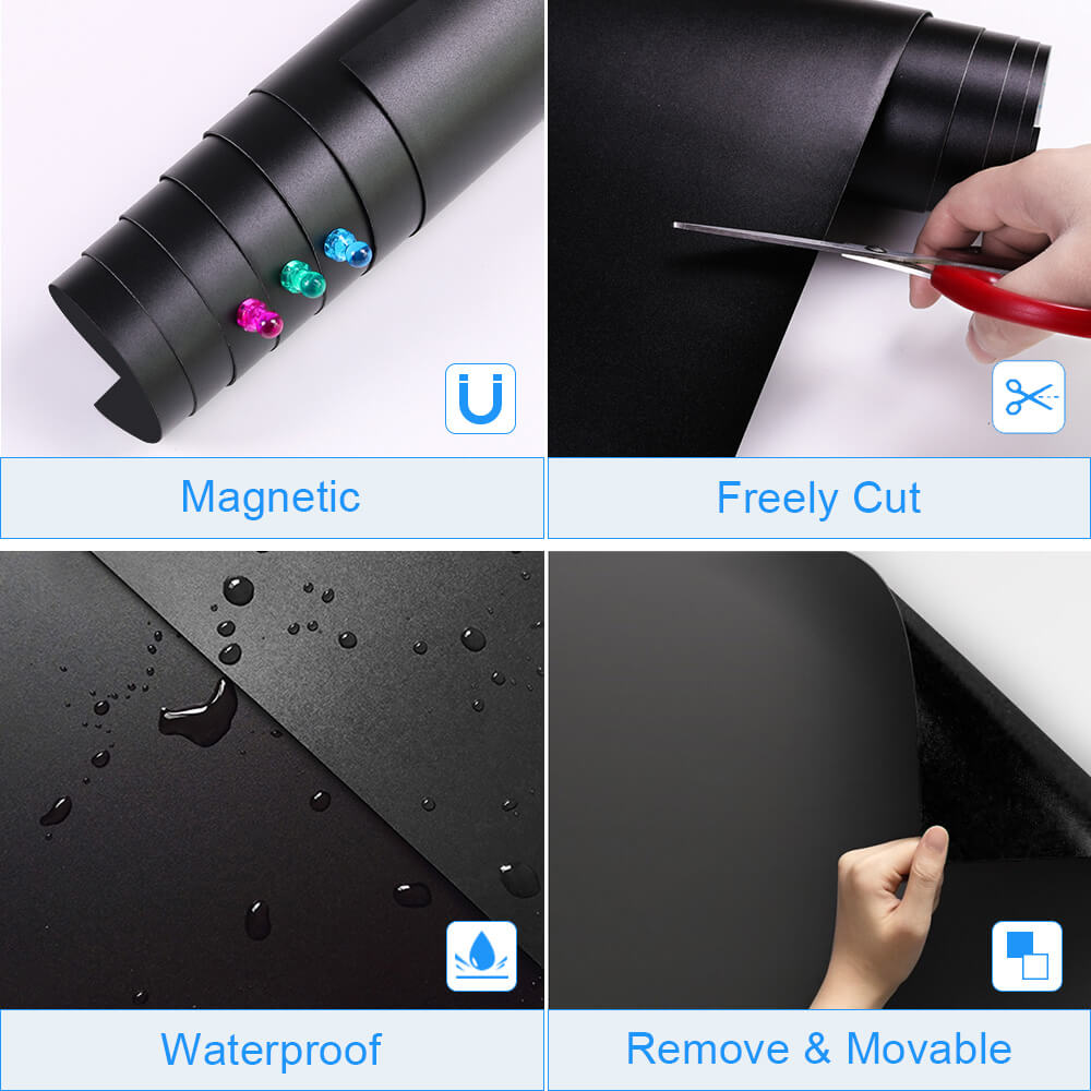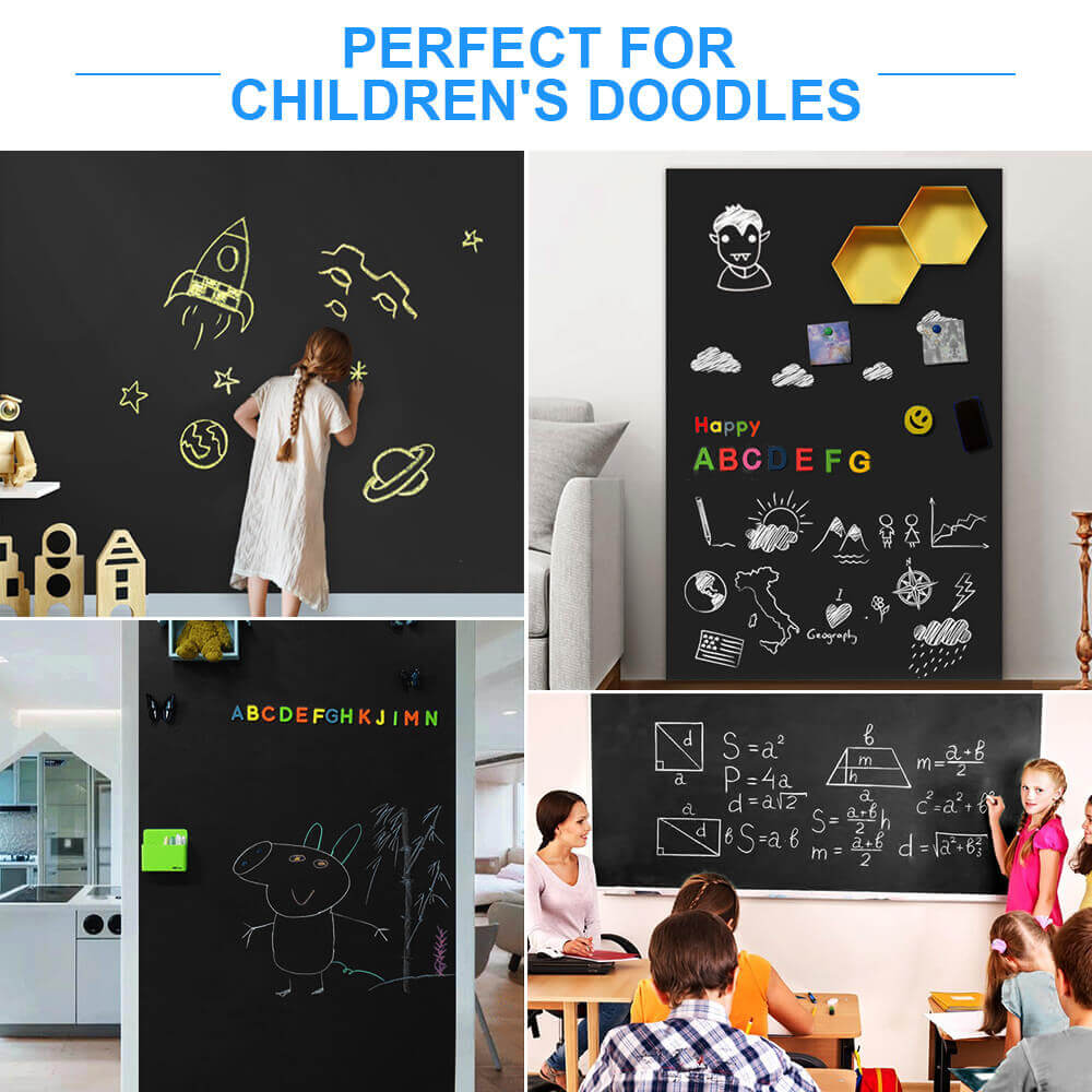 - 【EASY TO WRITE ON AND CLEAN】- The surface of our chalkboard sheet is made of high-quality PVC film, and the back is made of iron mixed rubber, which provides you with real chalkboard writing experience and can be easily wiped without leaving traces, Can be written with chalks and chalk markers