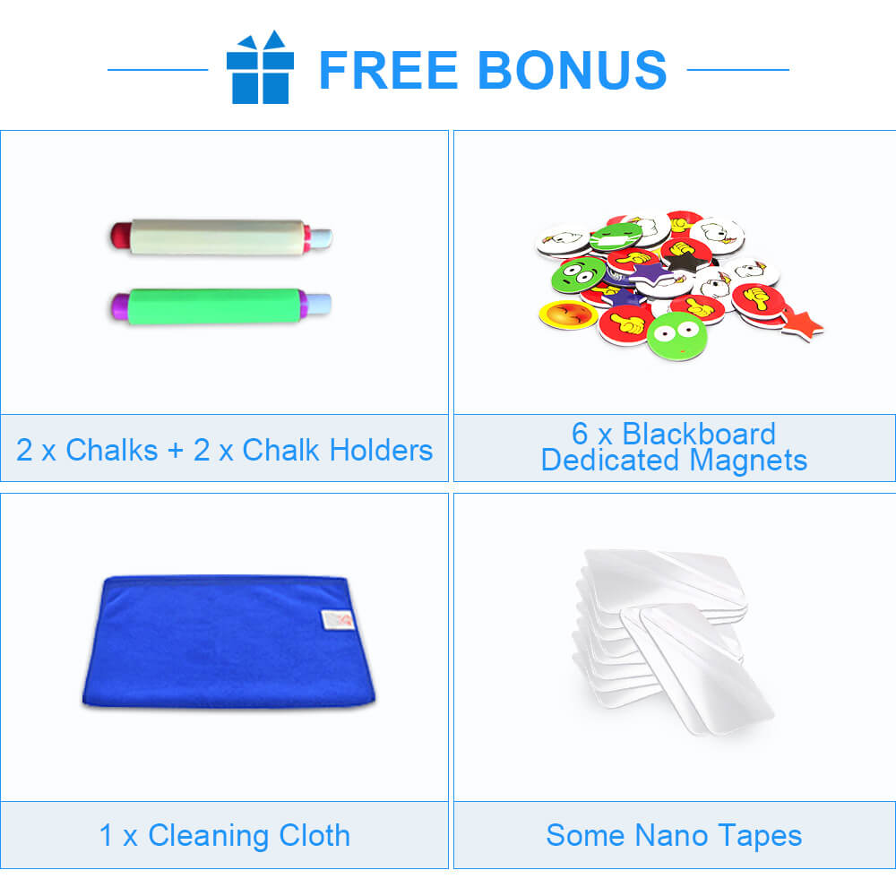 - 【AVAILABLE IN MULTI-SIZE】- Our chalkboard has a variety of sizes for you to choose, perfect for children’s bedrooms, creative spaces, home decor, cafe decor, restaurant decor, If you need a larger-size chalkboard, welcome Contact us to customize, If you want a chalkboard with better magnetic properties, please choose our 0.8mm thick chalkboard