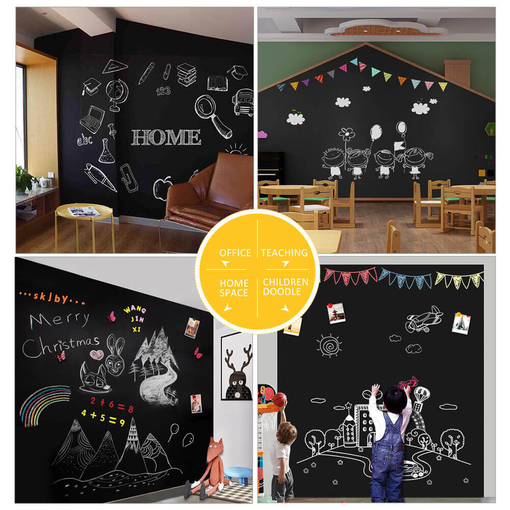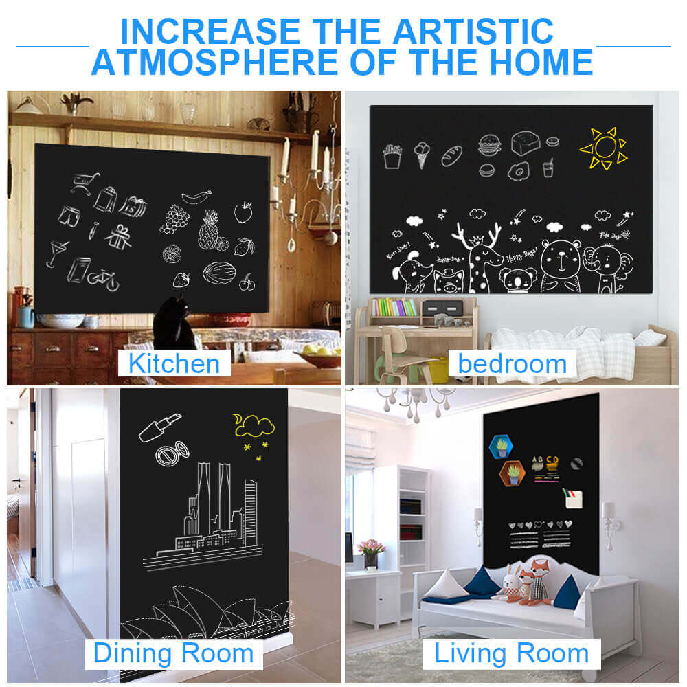 You can enjoy your creativity to cut the blackboard into any shape. Refreshen your home decor with colorful drawings.Write anything you want then erase when you're done. Simply use a clean and damp cloth to wipe it clean!