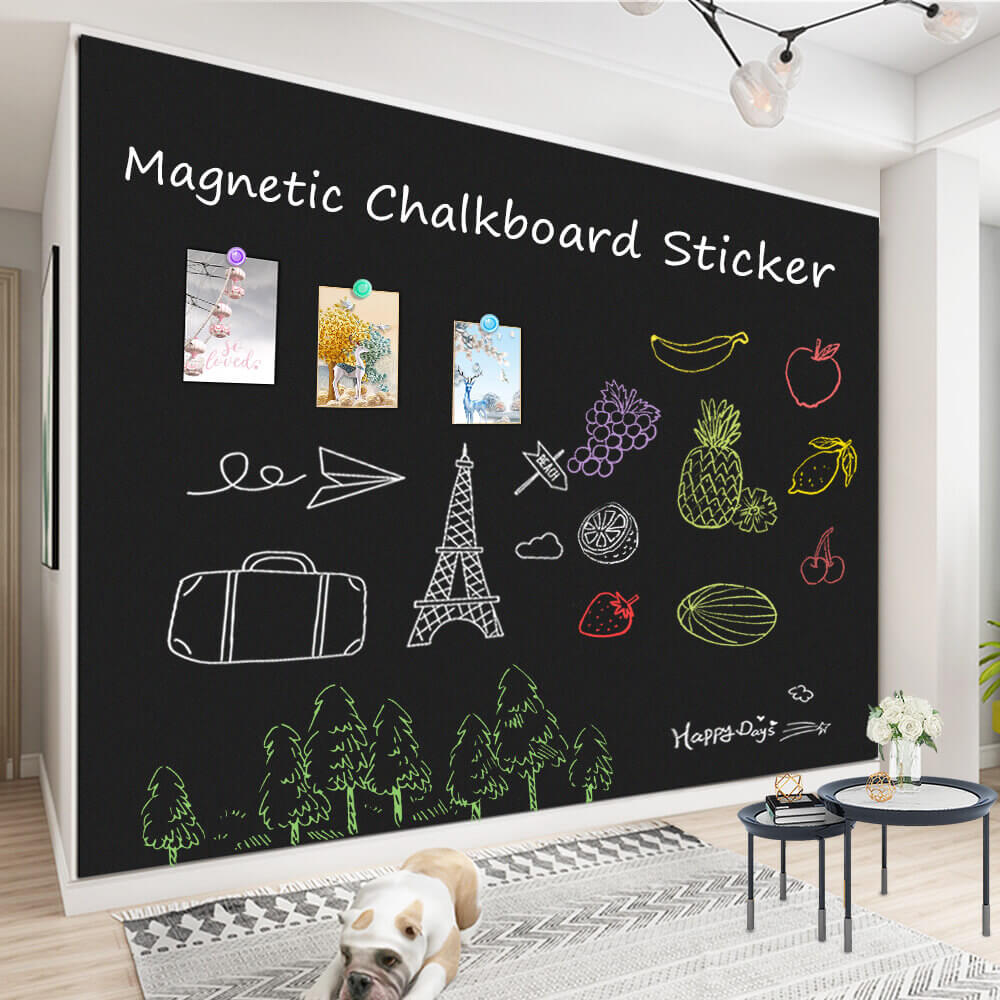 ZHIDIAN Magnetic Chalkboard Contact Paper for Wall, Non-Adhesive Back Chalkboard Wallpaper, Blackboard Wall Sticker with Chalks for Home/School/Playroom